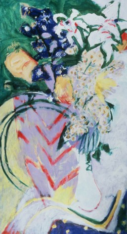 "delphinium, lilies & yellow roses"